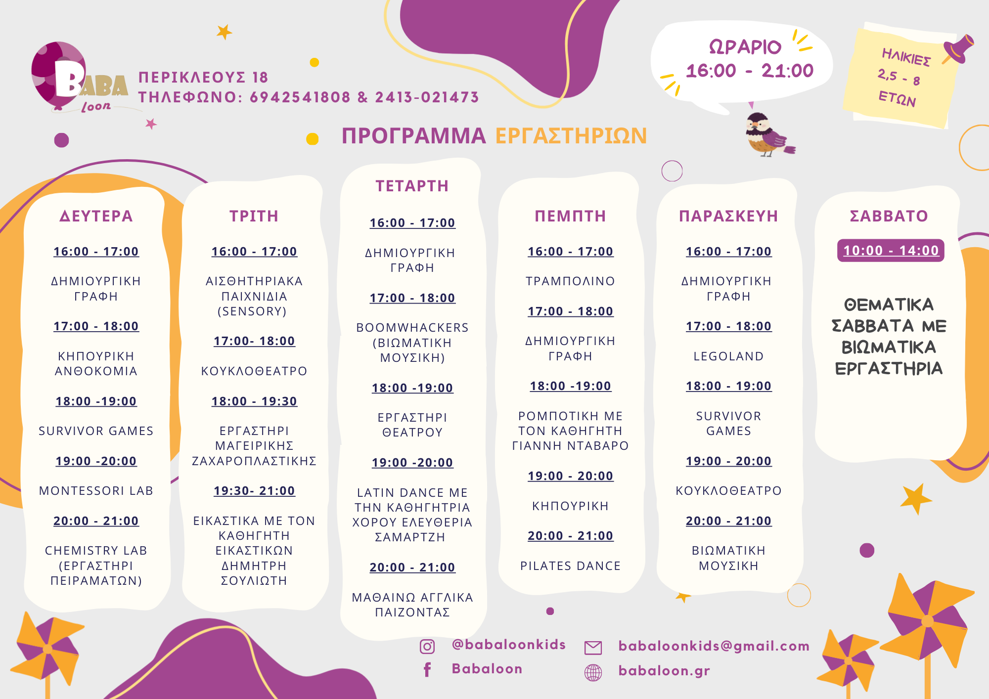 Παιδικό εργαστήρι δημιουργικής έκφρασης και ψυχαγωγίας για παιδιά ηλικίας 2,5 – 8 ετών!